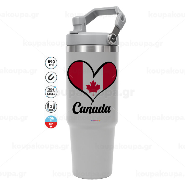 Canada flag, GREY Travel Tumbler with Handle 890ml
