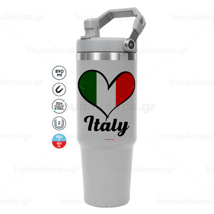 Italy flag, GREY Travel Tumbler with Handle 890ml