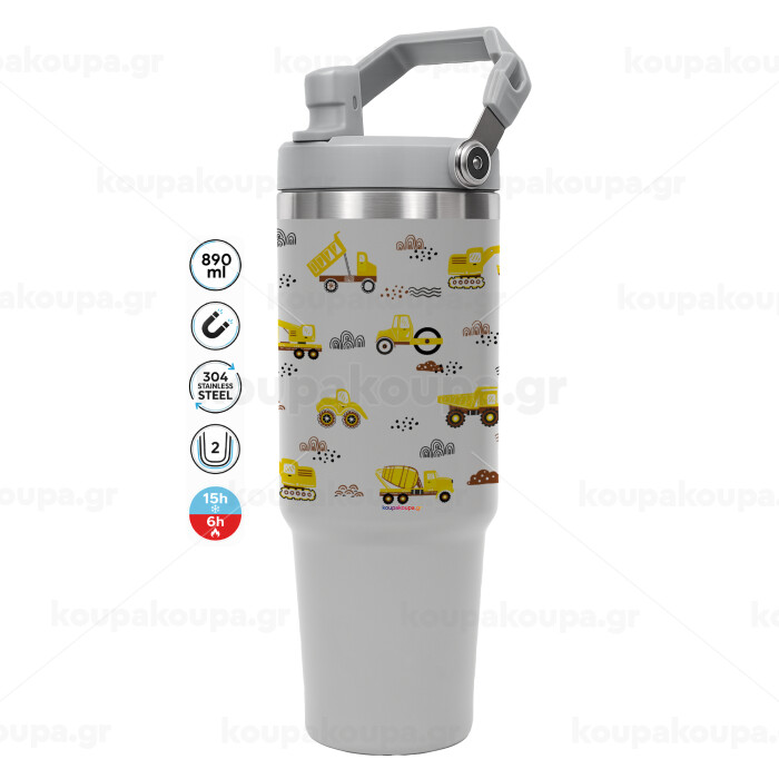 Car construction, GREY color, 890ml (30oz) stainless Steel Tumbler with Handle