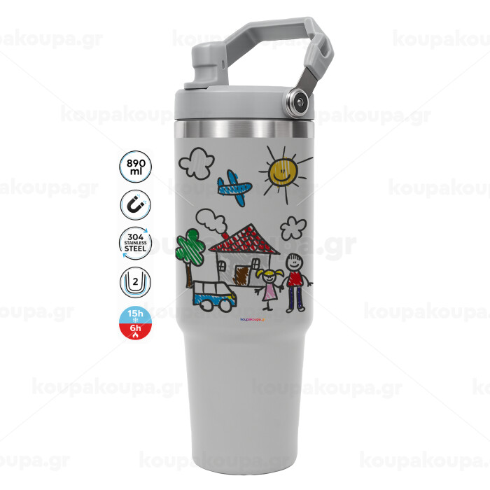Children's drawing, GREY color, 890ml (30oz) stainless Steel Tumbler with Handle