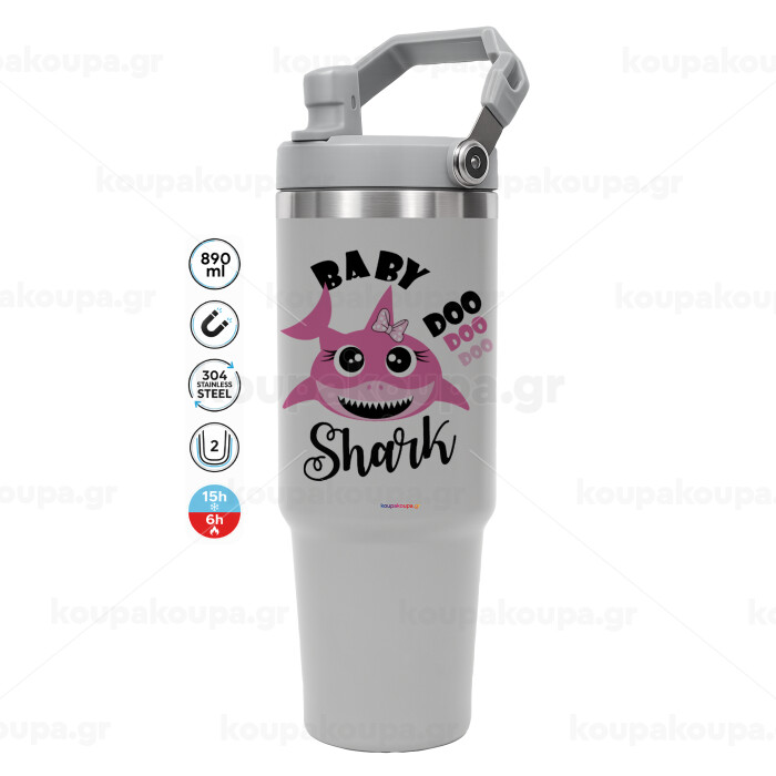 Baby Shark (girl), GREY color, 890ml (30oz) stainless Steel Tumbler with Handle