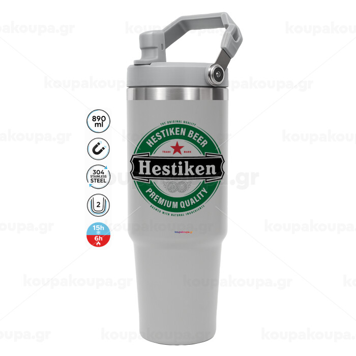 Hestiken Beer, GREY color, 890ml (30oz) stainless Steel Tumbler with Handle