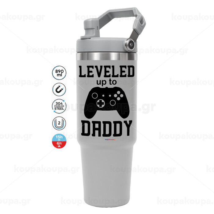 Leveled to Daddy, GREY color, 890ml (30oz) stainless Steel Tumbler with Handle