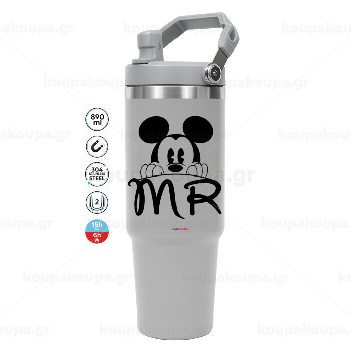 Mikey Mr, GREY color, 890ml (30oz) stainless Steel Tumbler with Handle