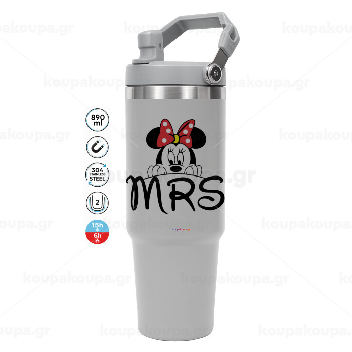 Minnie Mrs, GREY color, 890ml (30oz) stainless Steel Tumbler with Handle