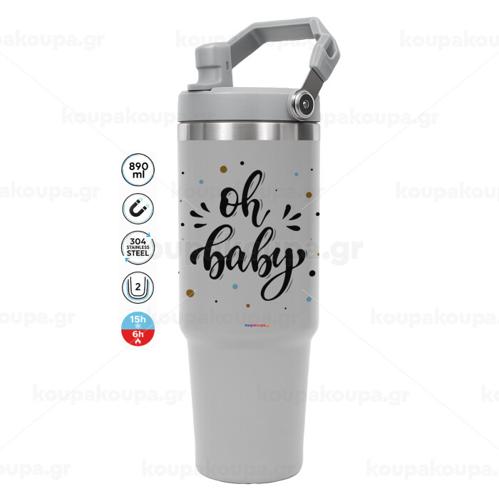 Oh baby, GREY color, 890ml (30oz) stainless Steel Tumbler with Handle