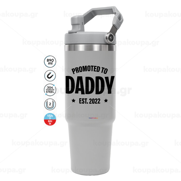 Promoted to Daddy, GREY color, 890ml (30oz) stainless Steel Tumbler with Handle