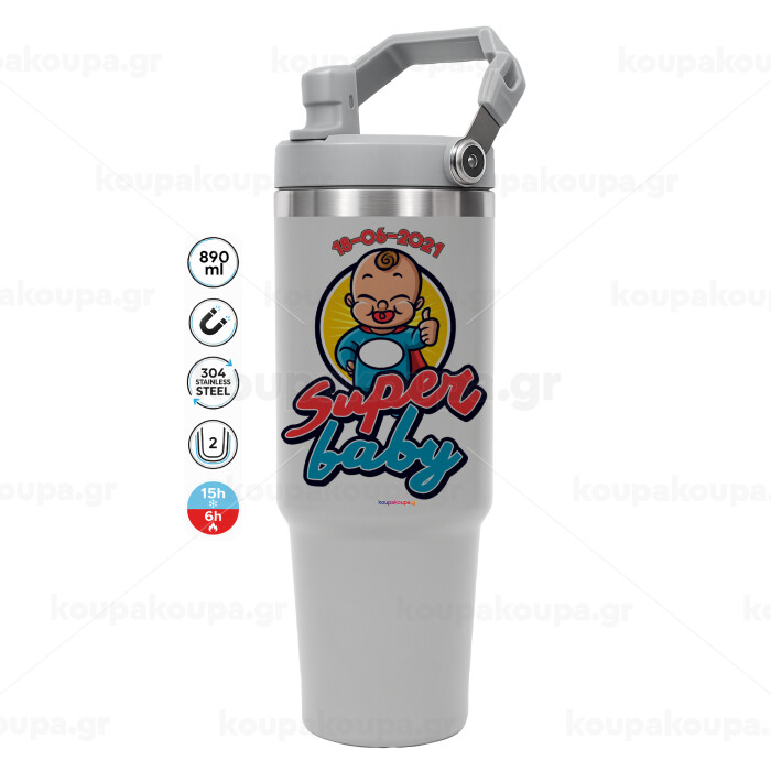 Super baby., GREY color, 890ml (30oz) stainless Steel Tumbler with Handle