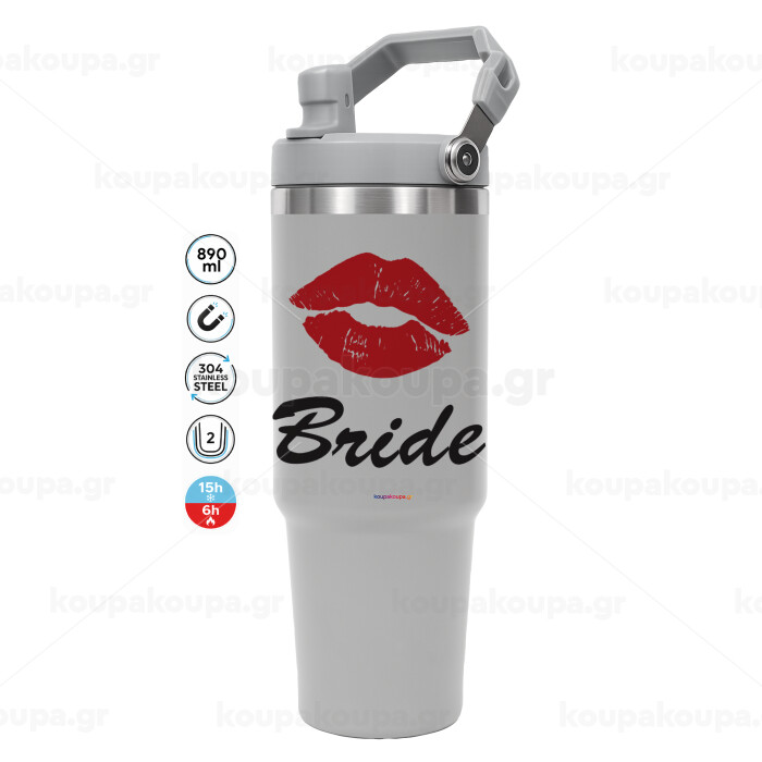Bride kiss, GREY color, 890ml (30oz) stainless Steel Tumbler with Handle