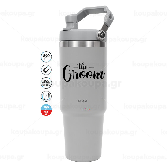 Groom & Bride (Groom), GREY color, 890ml (30oz) stainless Steel Tumbler with Handle
