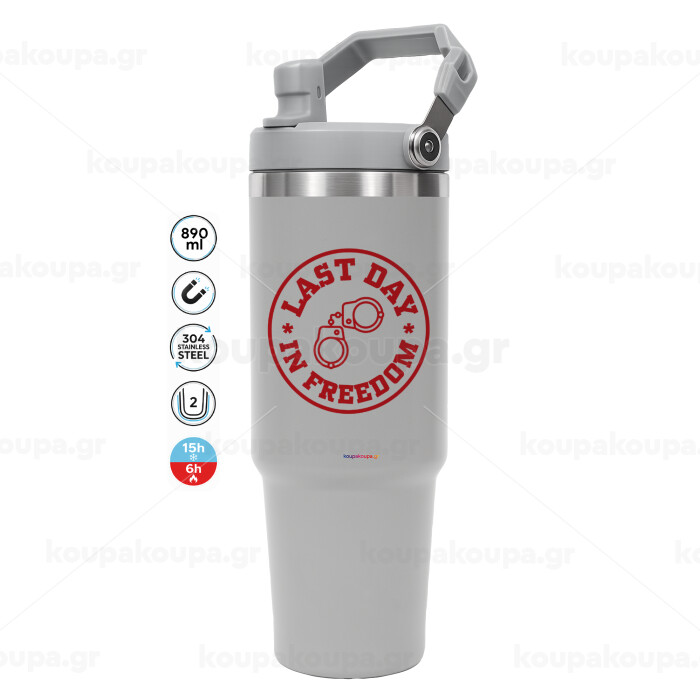 Last day freedom, GREY color, 890ml (30oz) stainless Steel Tumbler with Handle