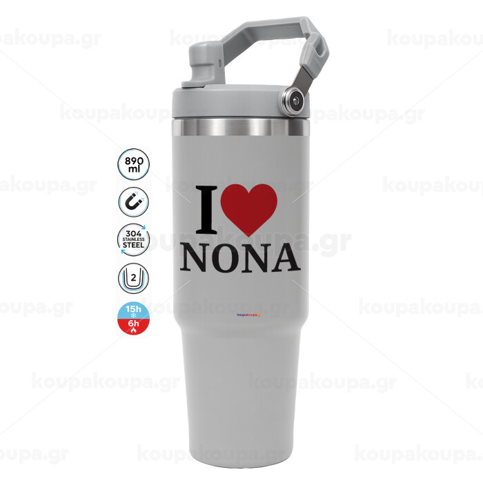 I Love ΝΟΝΑ, GREY color, 890ml (30oz) stainless Steel Tumbler with Handle