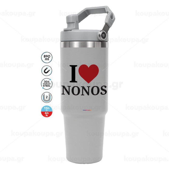 I Love ΝΟΝΟΣ, GREY color, 890ml (30oz) stainless Steel Tumbler with Handle