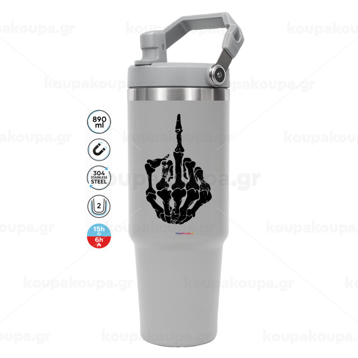 Middle finger, GREY color, 890ml (30oz) stainless Steel Tumbler with Handle