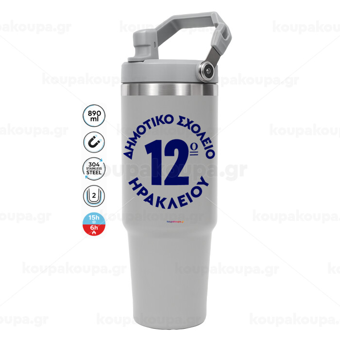Έμβλημα Σχολικό λευκή, GREY color, 890ml (30oz) stainless Steel Tumbler with Handle