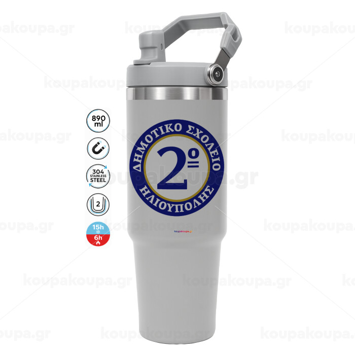 Έμβλημα Σχολικό μπλε/χρυσό, GREY color, 890ml (30oz) stainless Steel Tumbler with Handle