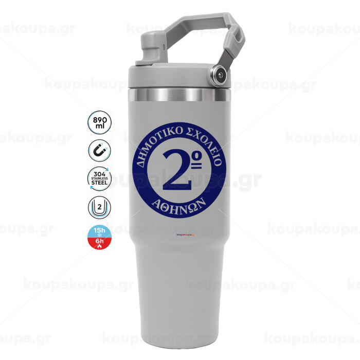 Έμβλημα Σχολικό μπλε, GREY color, 890ml (30oz) stainless Steel Tumbler with Handle