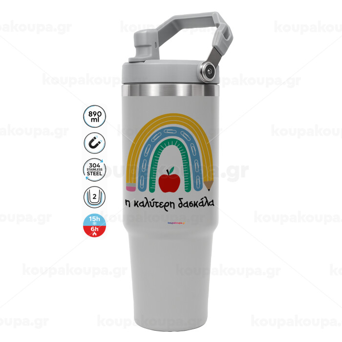Η καλύτερη δασκάλα, GREY color, 890ml (30oz) stainless Steel Tumbler with Handle