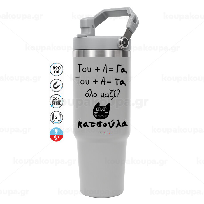 Κατσούλα, GREY color, 890ml (30oz) stainless Steel Tumbler with Handle