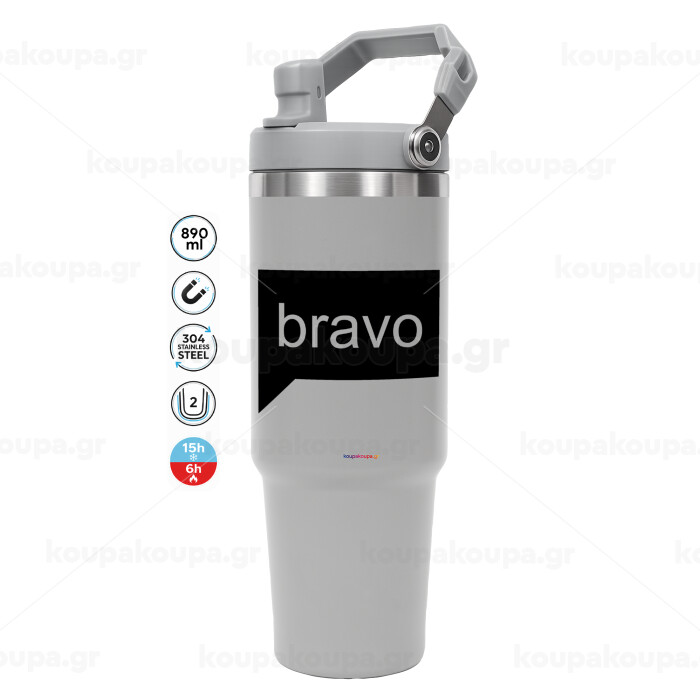 Bravo, GREY color, 890ml (30oz) stainless Steel Tumbler with Handle