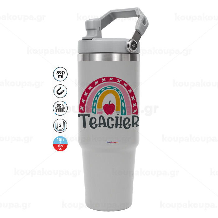 Rainbow teacher, GREY color, 890ml (30oz) stainless Steel Tumbler with Handle