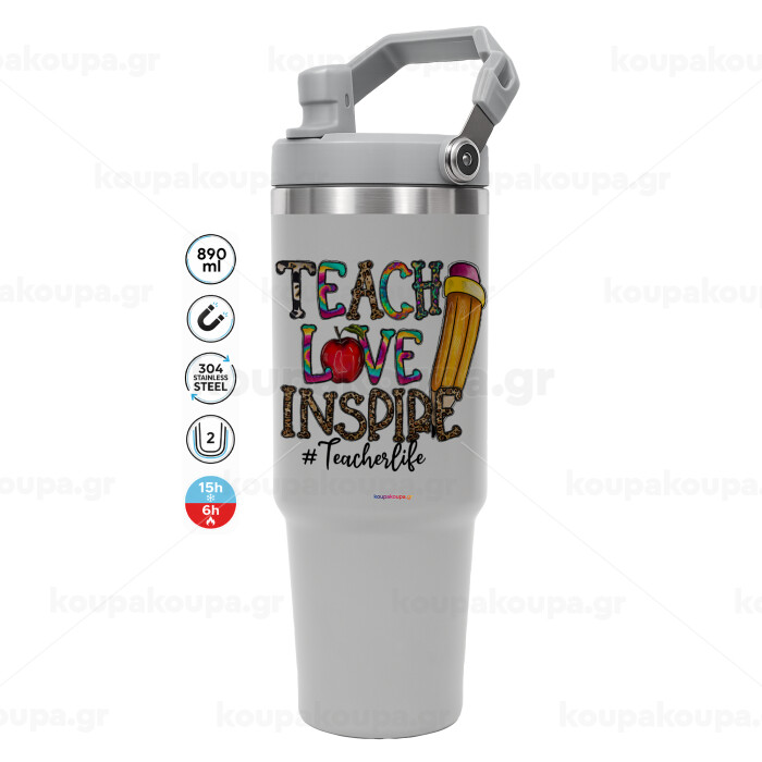 Teach, Love, Inspire, GREY color, 890ml (30oz) stainless Steel Tumbler with Handle