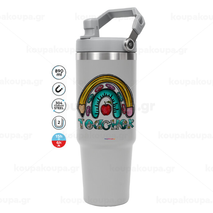 Teacher, GREY color, 890ml (30oz) stainless Steel Tumbler with Handle