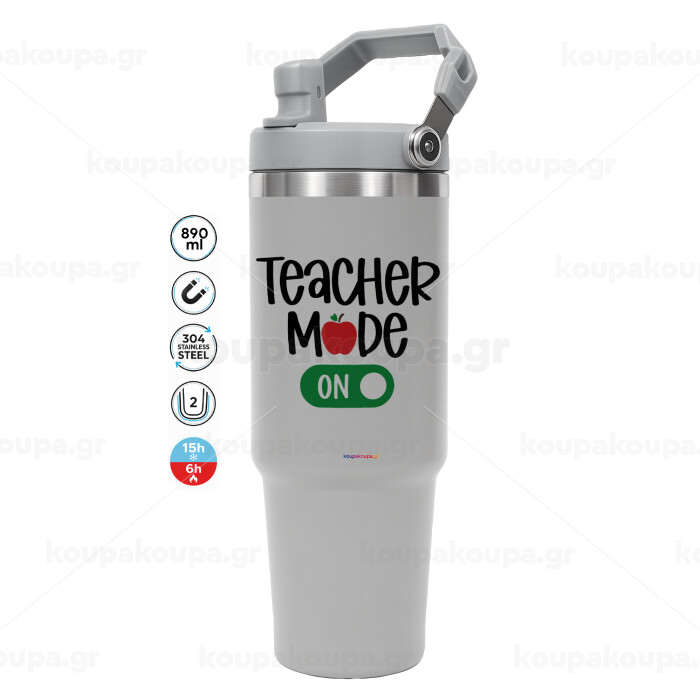 Teacher mode ON, GREY color, 890ml (30oz) stainless Steel Tumbler with Handle