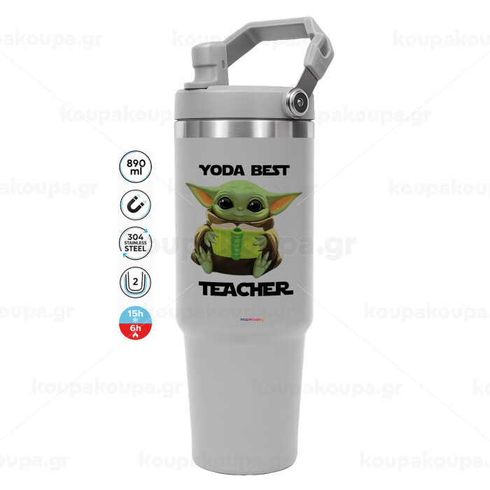 Yoda Best Teacher, GREY color, 890ml (30oz) stainless Steel Tumbler with Handle
