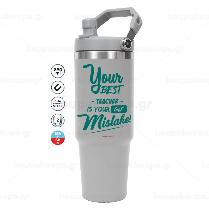 Your best teacher is your last mistake, GREY color, 890ml (30oz) stainless Steel Tumbler with Handle
