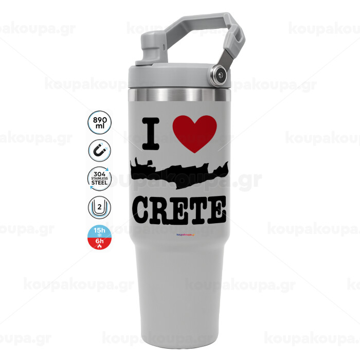 I Love Crete, GREY color, 890ml (30oz) stainless Steel Tumbler with Handle