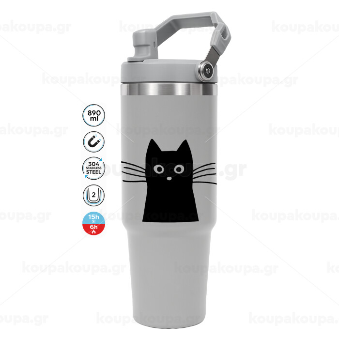 Black Cat, GREY color, 890ml (30oz) stainless Steel Tumbler with Handle
