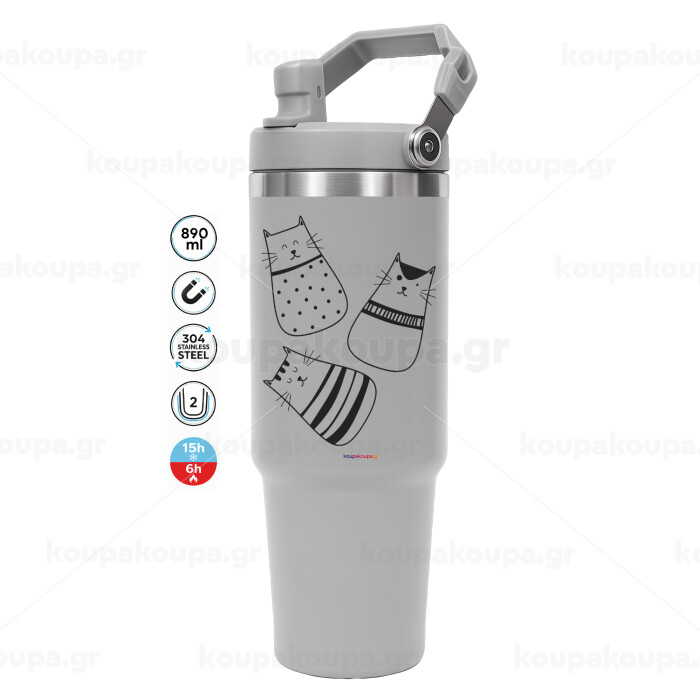 Cute cats, GREY color, 890ml (30oz) stainless Steel Tumbler with Handle