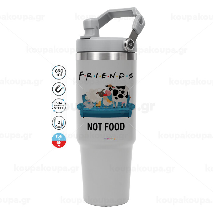 friends, not food, GREY color, 890ml (30oz) stainless Steel Tumbler with Handle