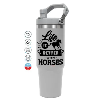 Life is Better with a Horses, GREY color, 890ml (30oz) stainless Steel Tumbler with Handle