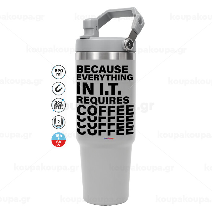 Because everything in I.T. requires coffee, GREY color, 890ml (30oz) stainless Steel Tumbler with Handle