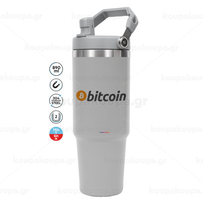 Bitcoin Crypto, GREY color, 890ml (30oz) stainless Steel Tumbler with Handle