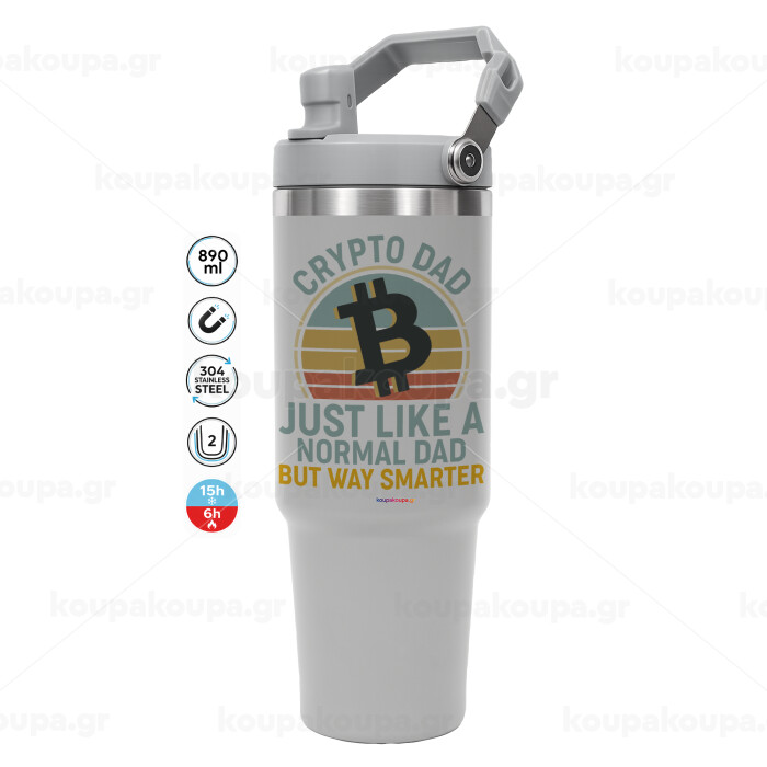 Crypto Dad, GREY color, 890ml (30oz) stainless Steel Tumbler with Handle