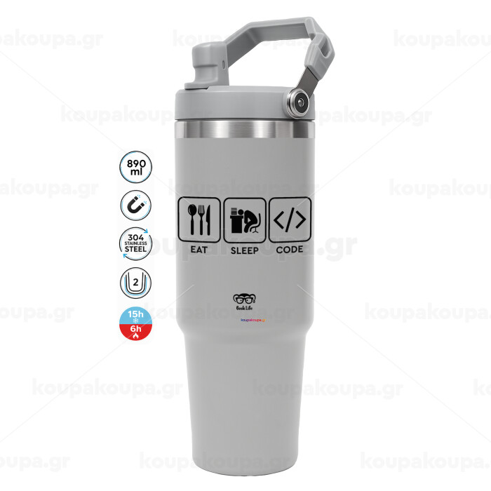 Eat Sleep Code, GREY color, 890ml (30oz) stainless Steel Tumbler with Handle