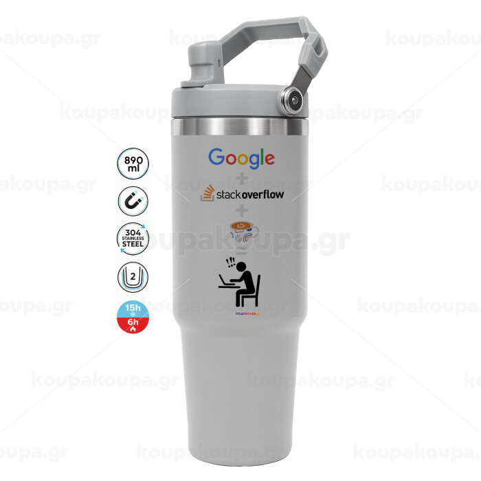 Google + Stack overflow + Coffee, GREY color, 890ml (30oz) stainless Steel Tumbler with Handle