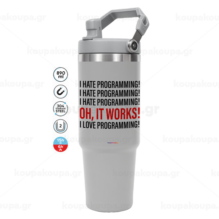 I hate programming!!!, GREY color, 890ml (30oz) stainless Steel Tumbler with Handle
