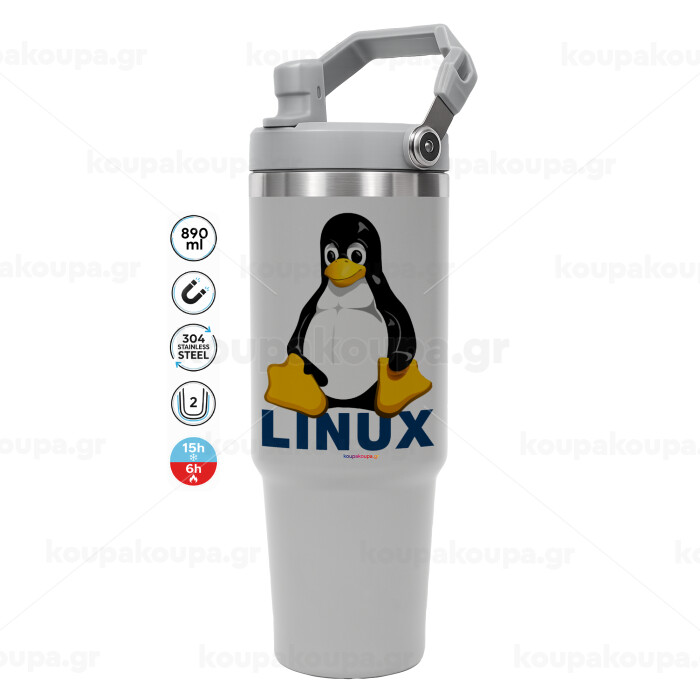 Linux, GREY color, 890ml (30oz) stainless Steel Tumbler with Handle