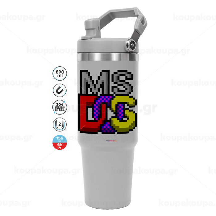 MsDos, GREY color, 890ml (30oz) stainless Steel Tumbler with Handle