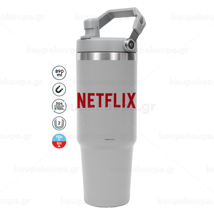 Netflix, GREY color, 890ml (30oz) stainless Steel Tumbler with Handle