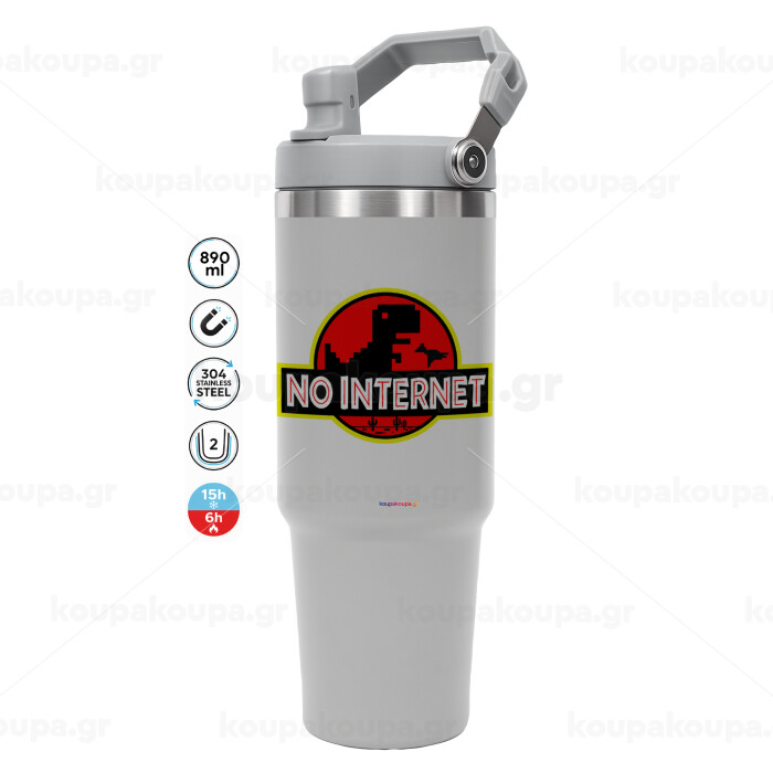 No internet, GREY color, 890ml (30oz) stainless Steel Tumbler with Handle
