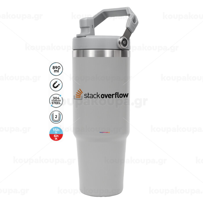StackOverflow, GREY color, 890ml (30oz) stainless Steel Tumbler with Handle