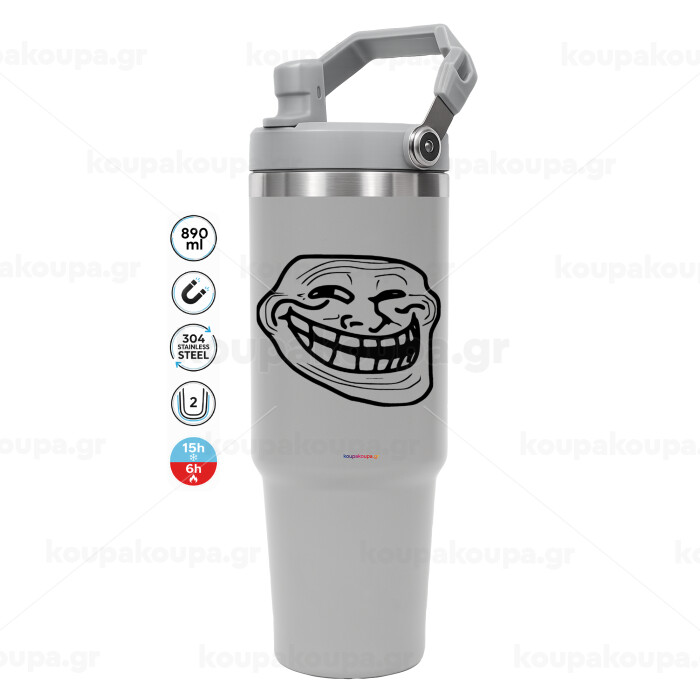 Troll face, GREY color, 890ml (30oz) stainless Steel Tumbler with Handle