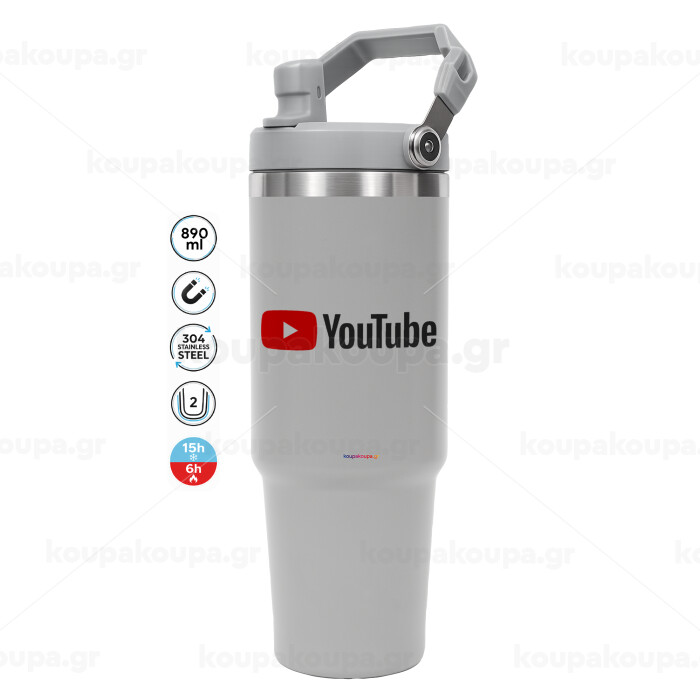 Youtube, GREY color, 890ml (30oz) stainless Steel Tumbler with Handle