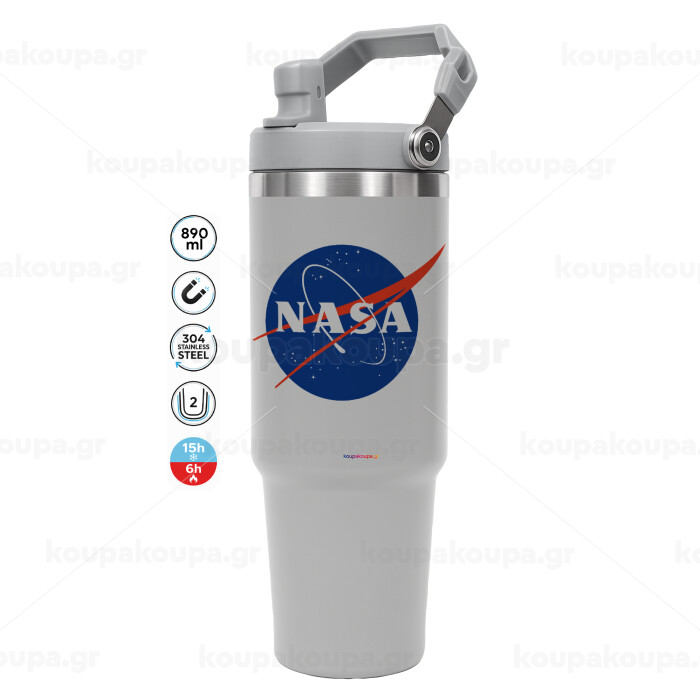 Nasa, GREY color, 890ml (30oz) stainless Steel Tumbler with Handle