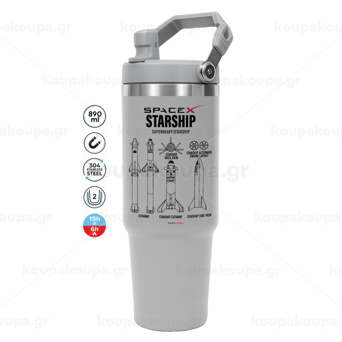 Space X, GREY color, 890ml (30oz) stainless Steel Tumbler with Handle